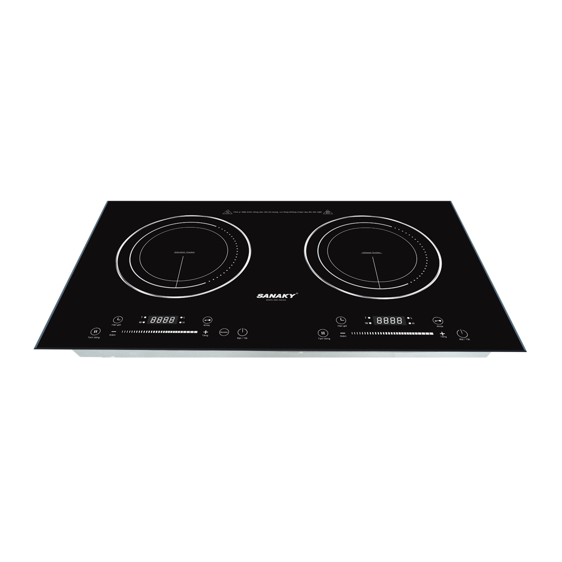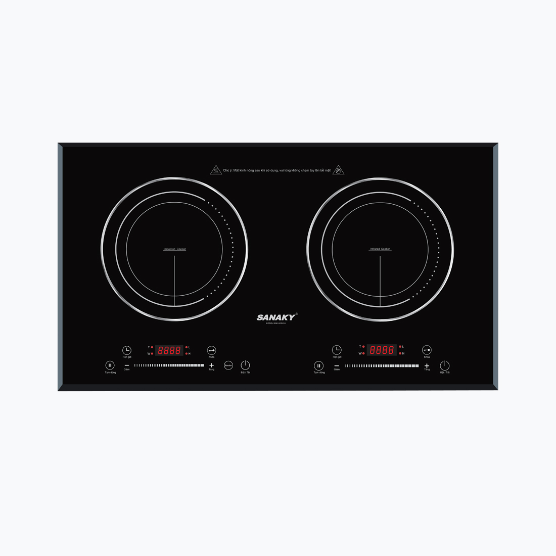 BẢNG ĐIỀU KHIỂN BẰNG TIẾNG VIỆTBếp 1 từ -1 hồng ngoại của Sanaky được trang bị với bảng điều khiển bằng tiếng việt khiến cho mọi người có thể dễ dàng sử dụng sản phẩm Người sử dụng có thể dễ dàng biết nhiệt độ hiện tại và điều chỉnh nhiệt độ phù hợp với việc nấu ăn. Màn led được bố trí ngay trên mặt bếp nên rất dễ quan sát trong quá trình sử dụng. |