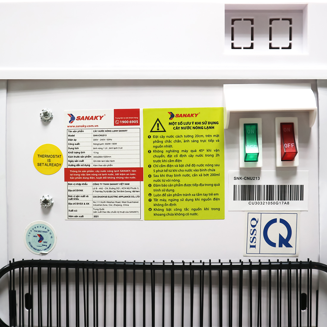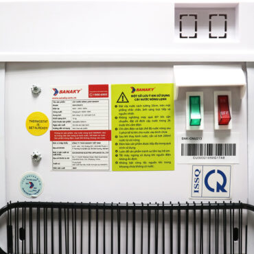 Khoảng cách giữa vòi và khay đựng nước được thiết kế hợp lý dễ dàng lấy nước. | Hệ thống tem nhãn sắc nét, cụ thể, rõ ràng. | Bình chứa nước bằng Inox cao cấp |